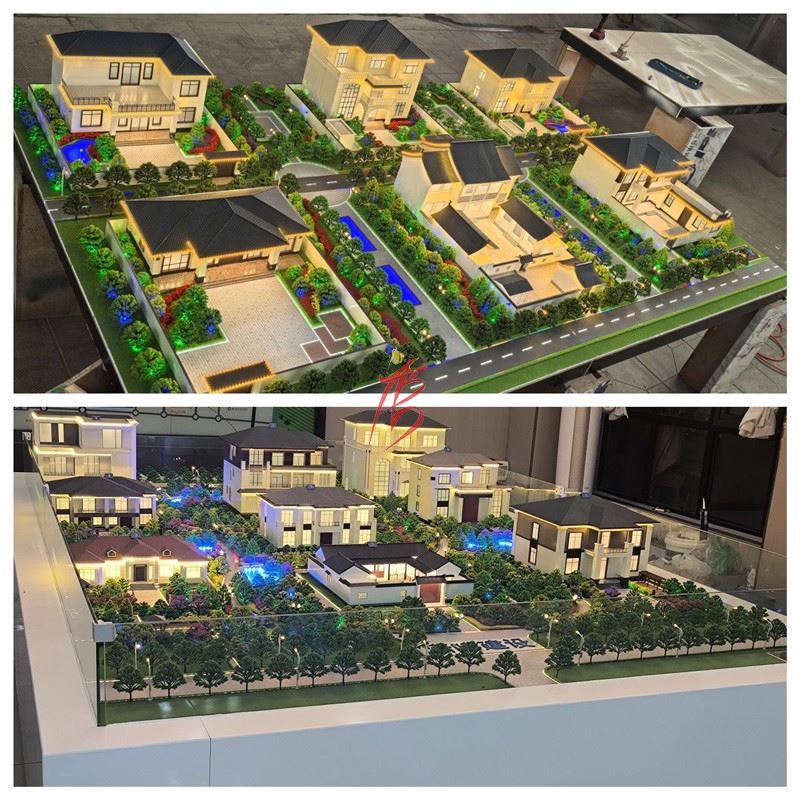 聲光動(dòng)態(tài):可選配 LED 燈光(室內(nèi)外照明、輪廓燈),部分模型可動(dòng)態(tài)演示水電走向、庭院亮化效果。